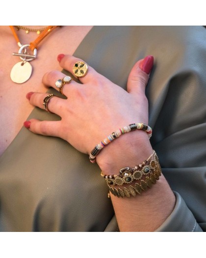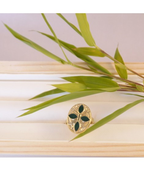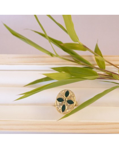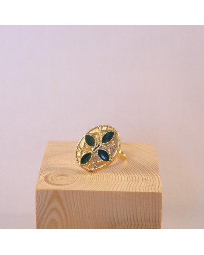 Bague réglable large martelée + 3 pierres noires (dorée)