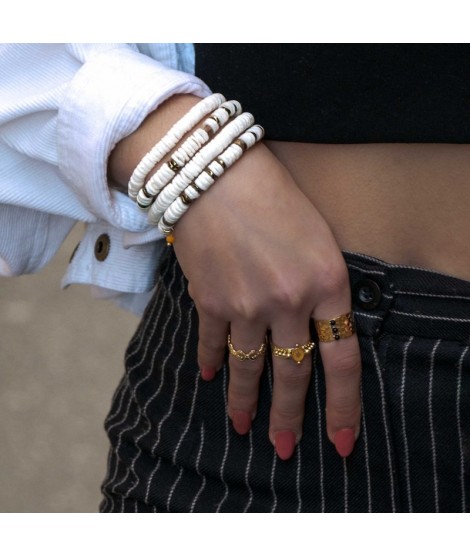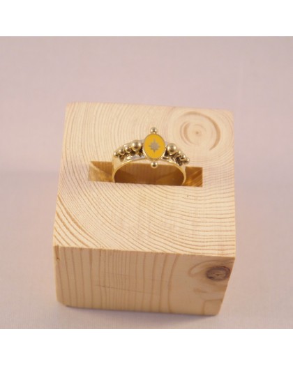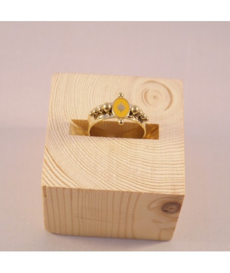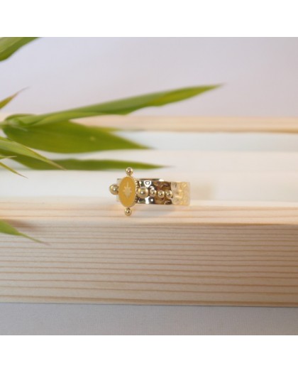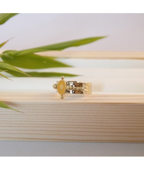 Bague réglable anneau martelé baroque boules et médaillon orangé + étoile (dorée)