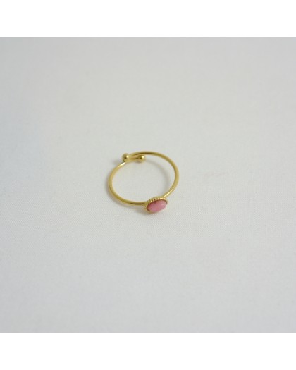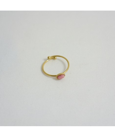 Bague ajustable pierre ovale Rhodonite (dorée)